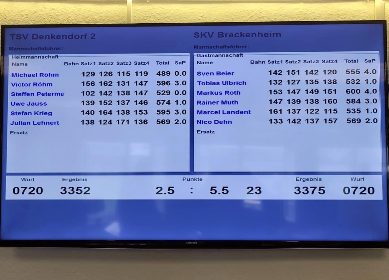 Oberliga Nord Männer: TSV Denkendorf 2 – SKV 1 2,5:5,5 (3352:3375)