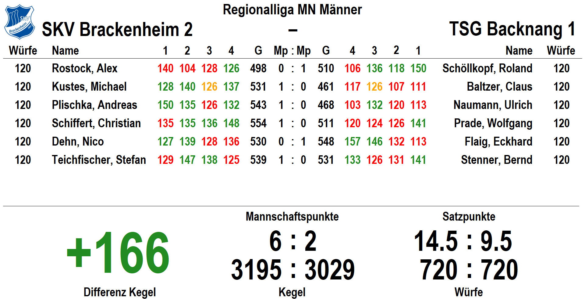 Regionalliga MN Männer: SKV 2 – TSG Backnang 6:2 (3195:3039)