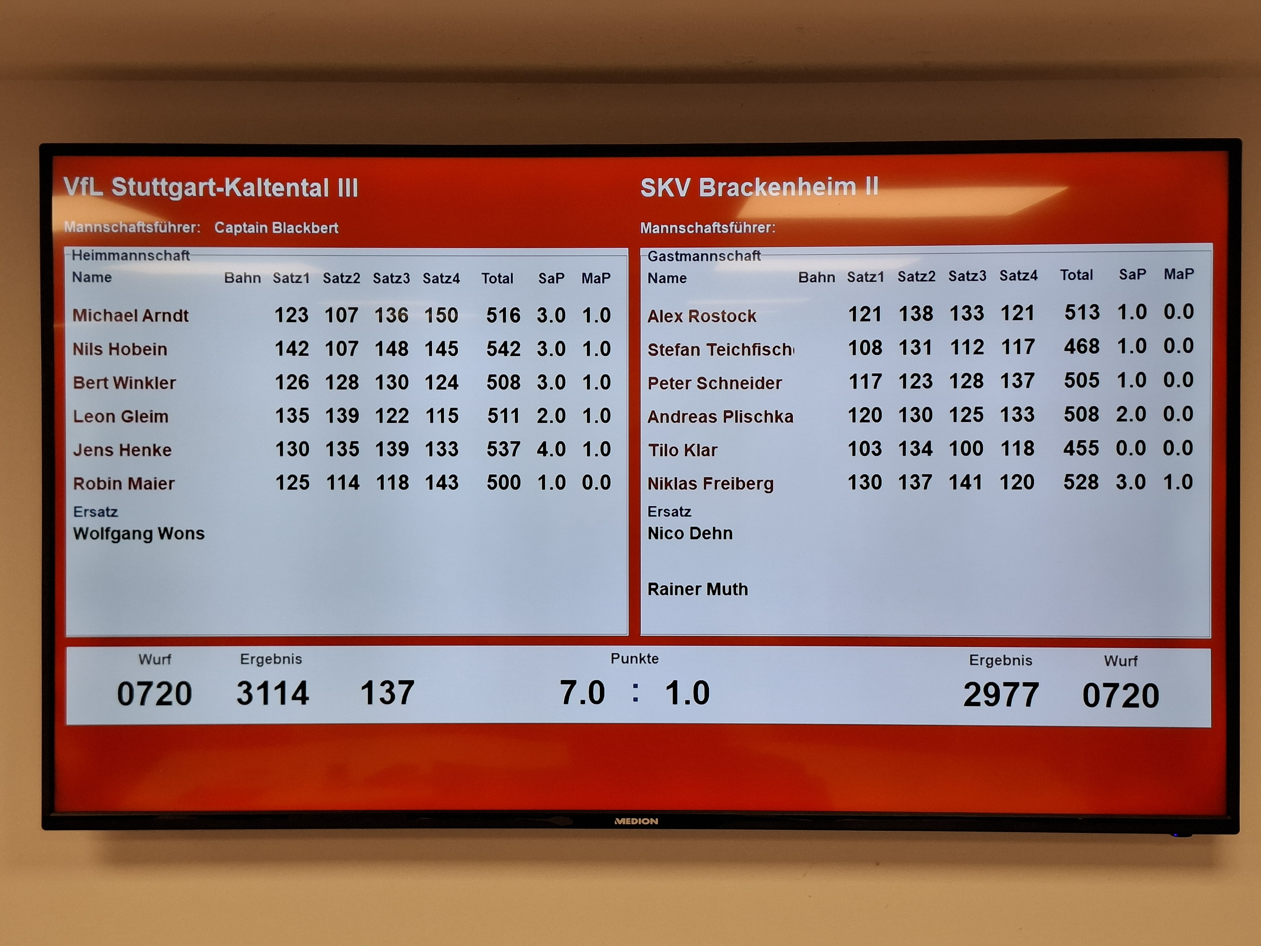 Niklas Freiberg 528 (3/1), Alex Rostock 513 (1/0), Andreas Plischka 508 (2/0), Peter Schneider 505 (1/0), Stefan Teichfischer 468 (1/0), Tilo Klar 455 (0/0)
