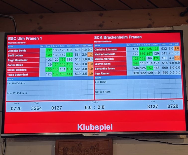 Zum letzten Spieltag ging die Reise nach Niederstotzingen. Die SKV-Keglerinnen zeigten zum Schluss nochmals eine tolle Leistung. Mit einer Gesamtkegelzahl von 2108 erreichten Sie den dritten Platz der Tagestabelle hinter dem Gastgeber TSV Niederstotzingen (2213 Kegel) und dem KC Schrezheim (2128 Kegel). Die Saison wurde damit auch auf dem dritten Platz der Gesamtwertung abgeschlossen. Es spielten Christina Lämmlen 556, Inge Renner 537, Marion Albrecht 537 und Heike Klenk 481.