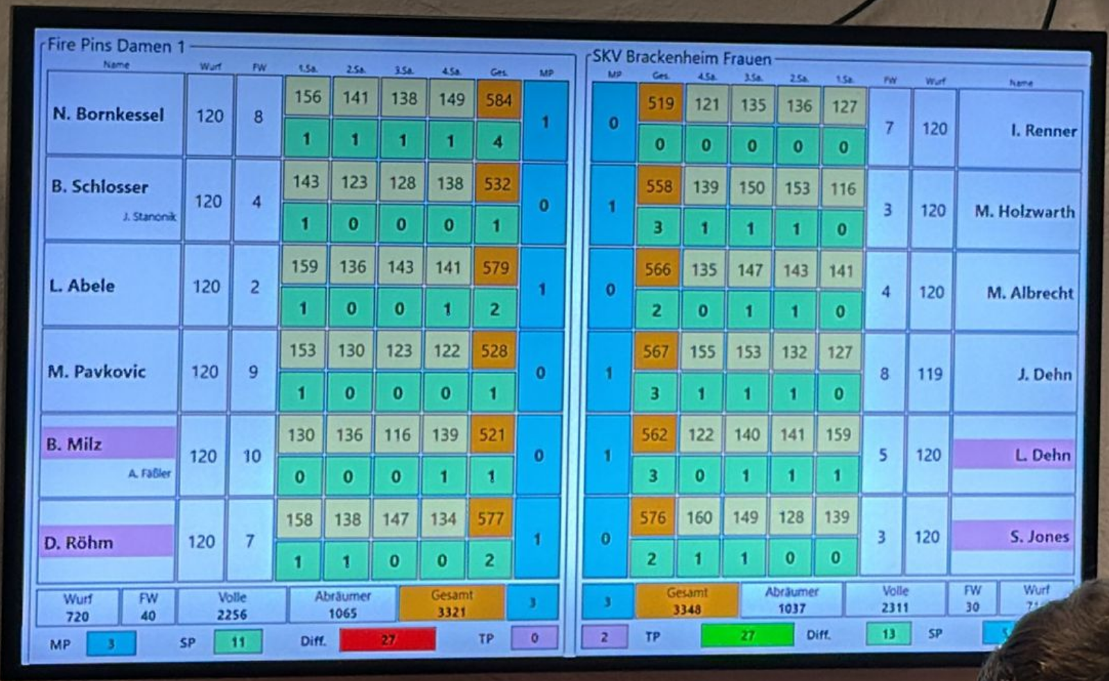 Verbandsliga Frauen: Fire Pins Essingen – SKV 1 3:5 (3321:3348)