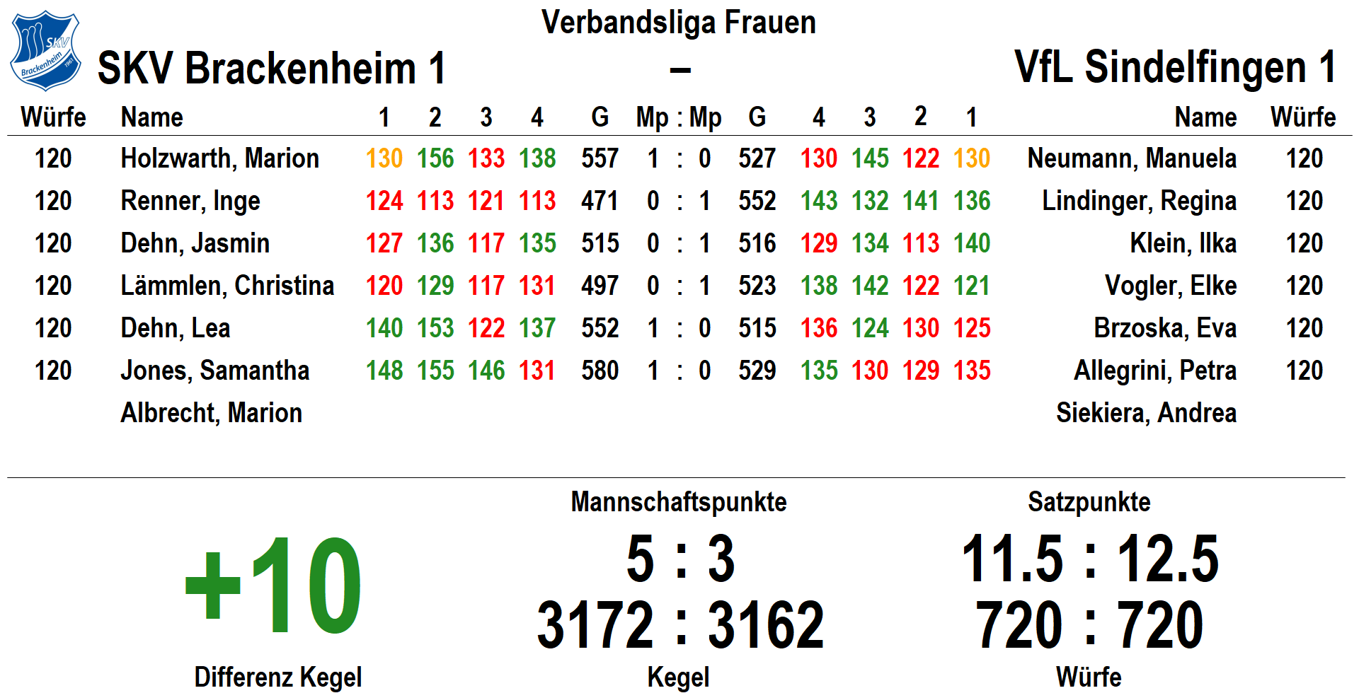 Verbandsliga Frauen: SKV Brackenheim – VfL Sindelfingen 5:3 (3172:3162)