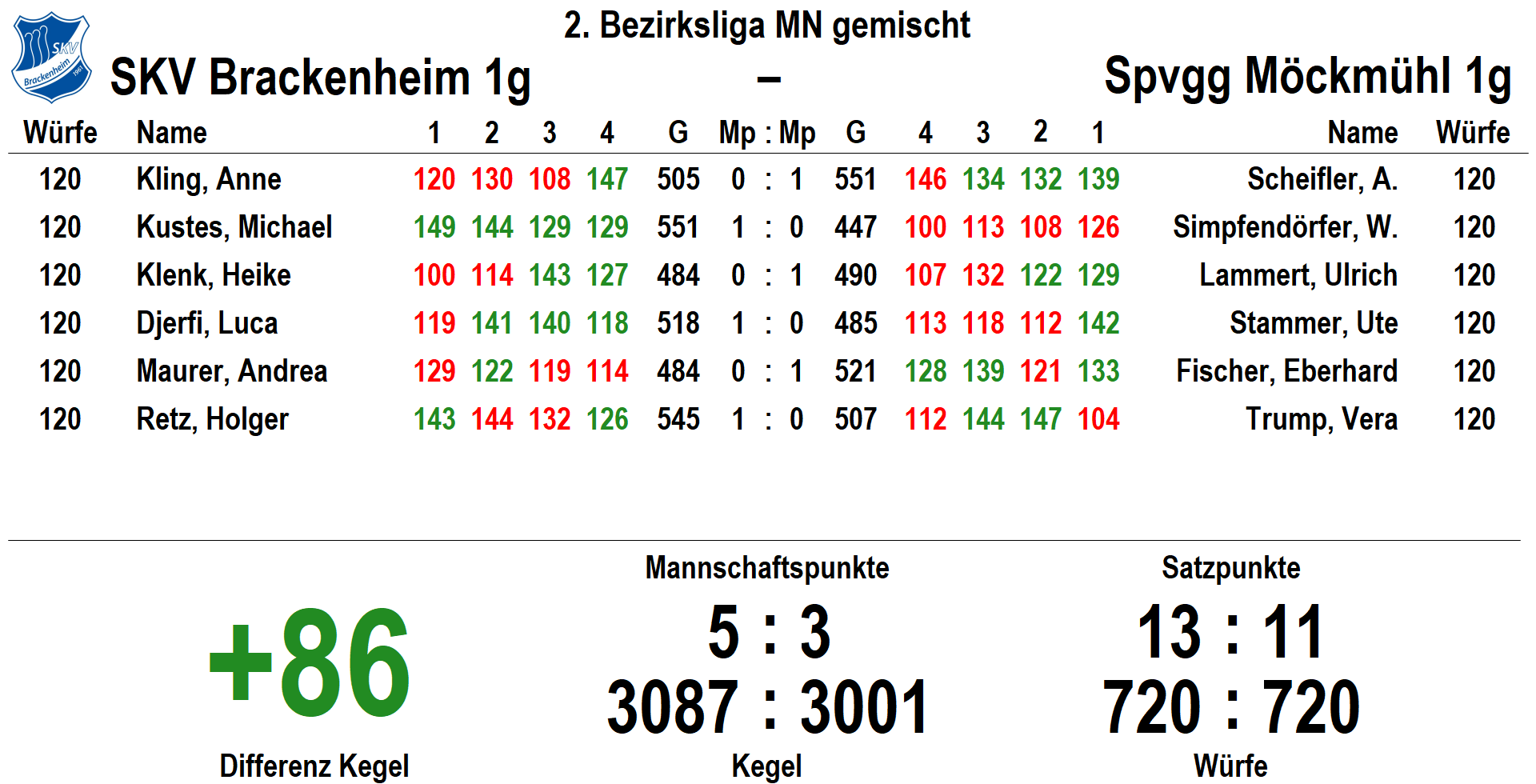 Zum letzten Spieltag ging die Reise nach Niederstotzingen. Die SKV-Keglerinnen zeigten zum Schluss nochmals eine tolle Leistung. Mit einer Gesamtkegelzahl von 2108 erreichten Sie den dritten Platz der Tagestabelle hinter dem Gastgeber TSV Niederstotzingen (2213 Kegel) und dem KC Schrezheim (2128 Kegel). Die Saison wurde damit auch auf dem dritten Platz der Gesamtwertung abgeschlossen. Es spielten Christina Lämmlen 556, Inge Renner 537, Marion Albrecht 537 und Heike Klenk 481.