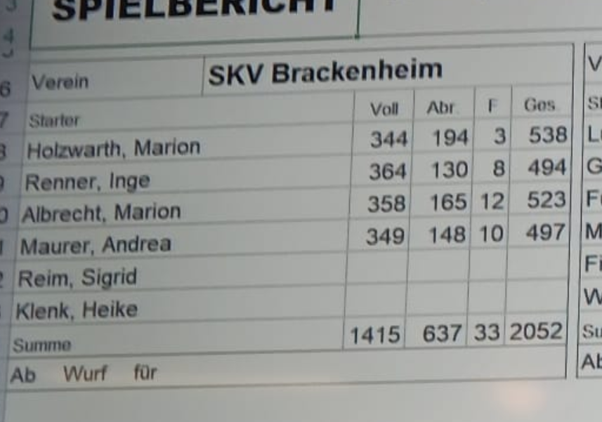 Es spielten M. Holzwarth 538, M. Albrecht 523, A. Maurer 497 und I. Renner 494. Herzlichen Glückwunsch zum Tagessieg.