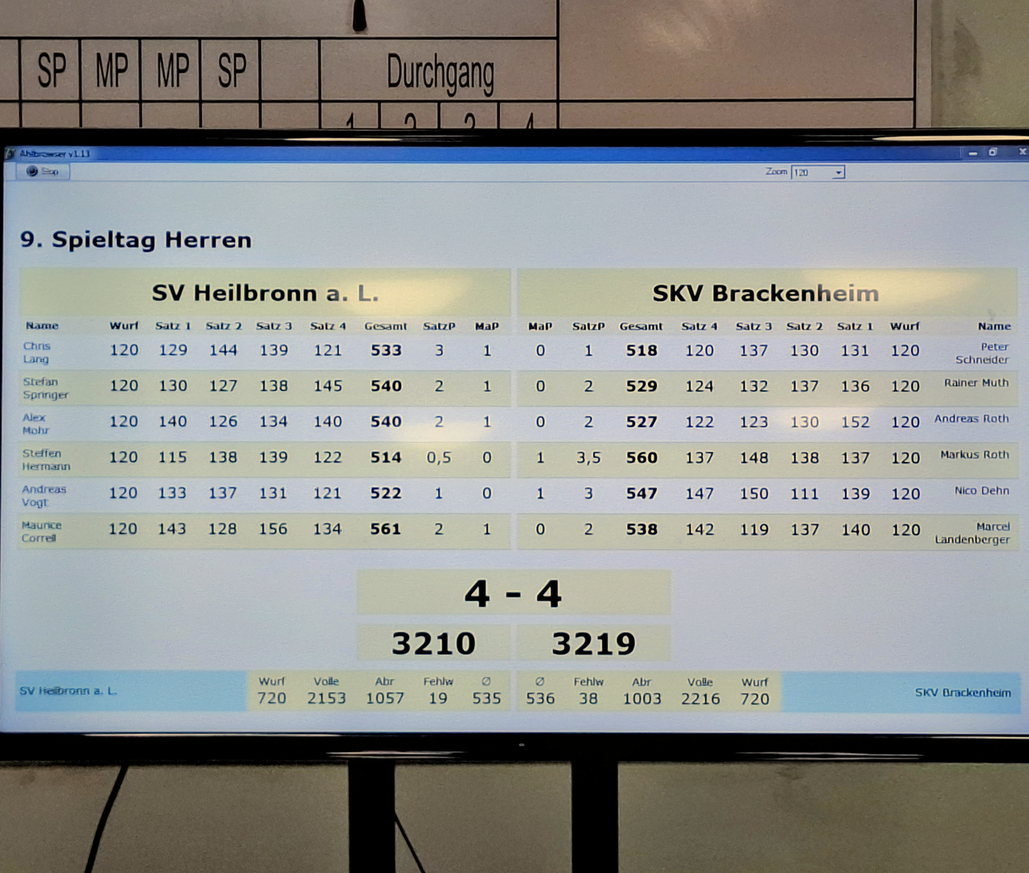Oberliga Nordwürtt. Männer SV Heilbronn a. L. 1 SKV Brackenheim 1 4.0 : 4.0 10.5 : 13.5 3210 : 3219 +9