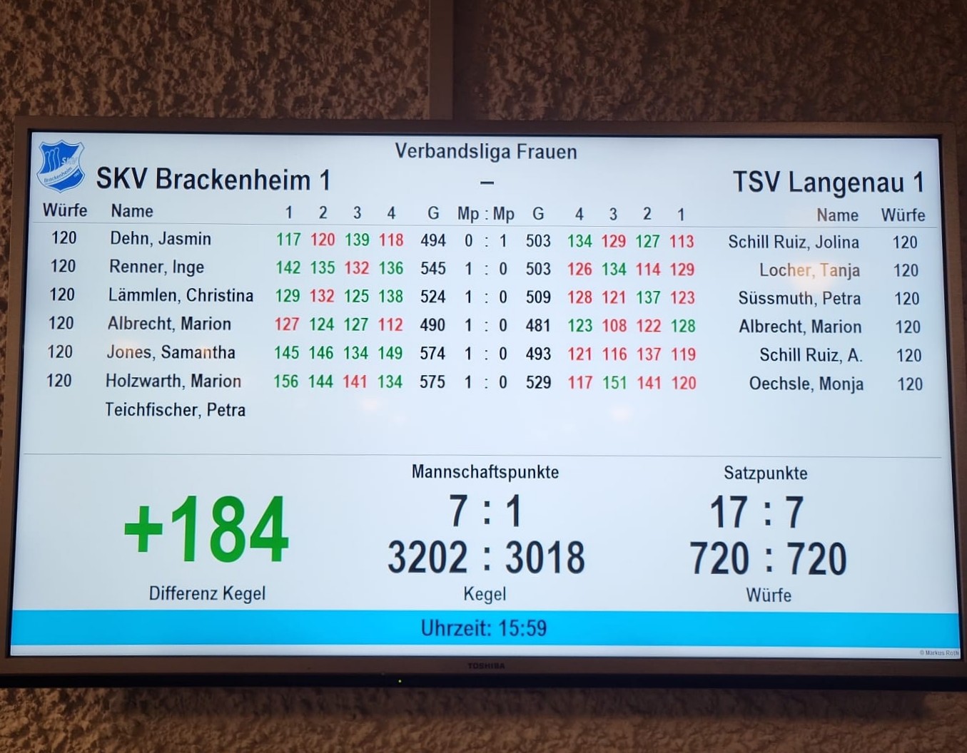 Verbandsliga Frauen SKV Brackenheim 1 TSV Langenau 1 7.0 : 1.0 17.0 : 7.0 3202 : 3018 +184