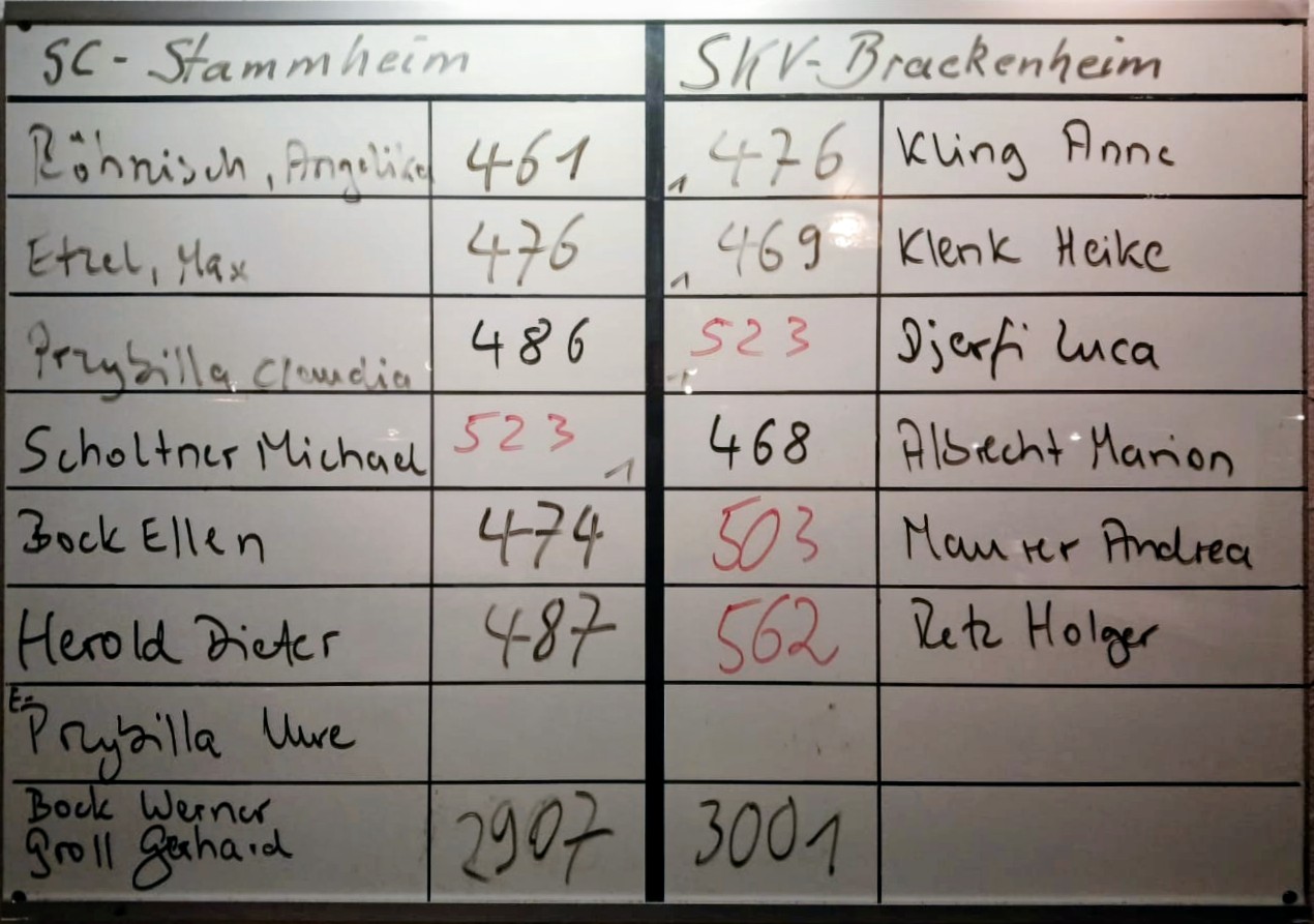 2. Bezirksliga MN gemischt SC Stammheim 1g SKV Brackenheim 1g 1.0 : 7.0 7.5 : 16.5 2907 : 3001 +94