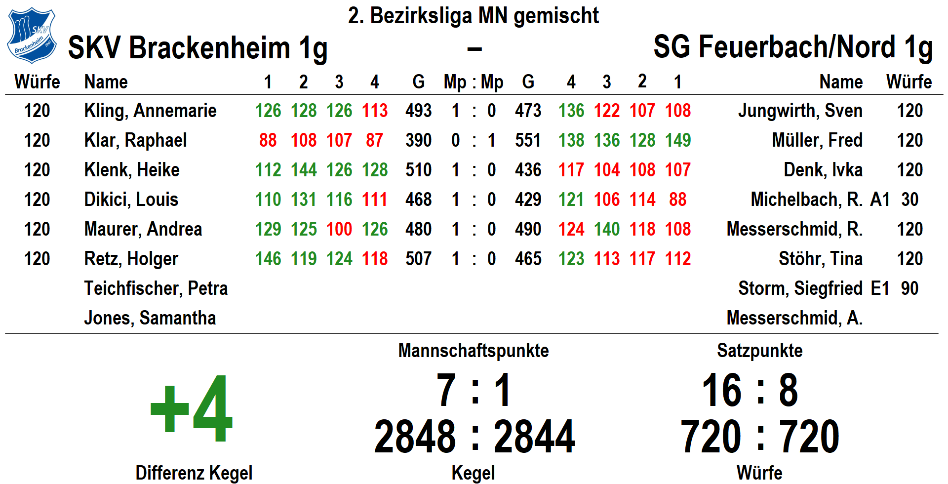 2. Bezirksliga MN gemischt SKV Brackenheim 1g SG Feuerbach/Nord 1g 7.0 : 1.0 16.0 : 8.0 2848 : 2844 +4